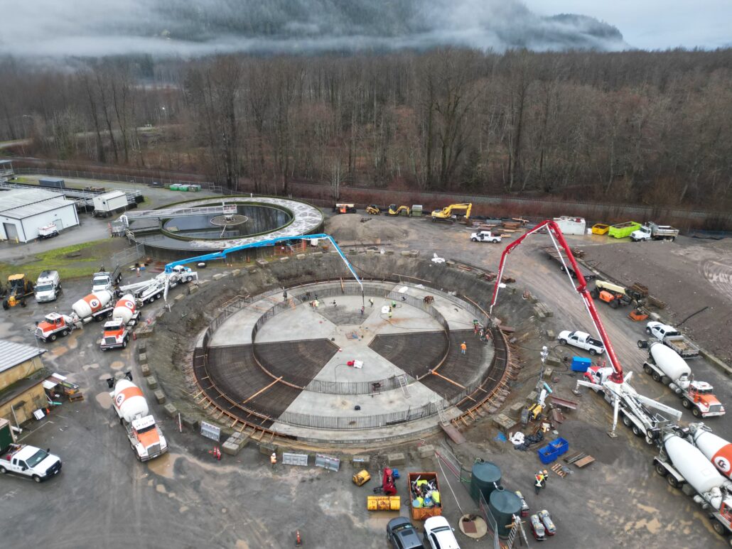 The District of Squamish is undertaking an extensive upgrade of the Mamquam Wastewater Treatment Plant. The WWTP upgrades consist of construction of a new circular bioreactor/clarifier tank, associated piping and a new septage receiving station. Ground under the proposed circular tank has been excavated to approx.1.5m below grade. Impacted utilities under the proposed circular footprint have been decommissioned and relocated.